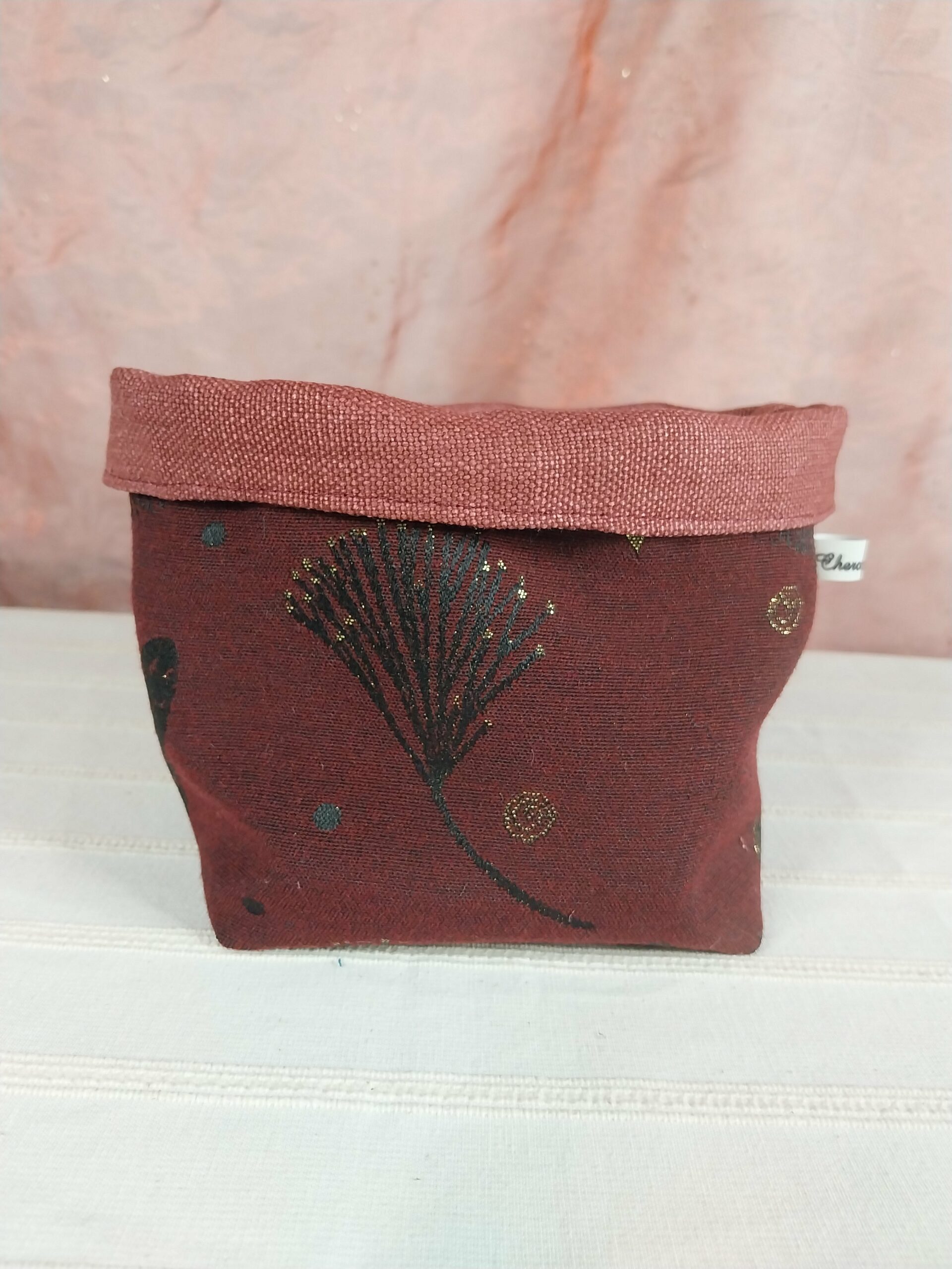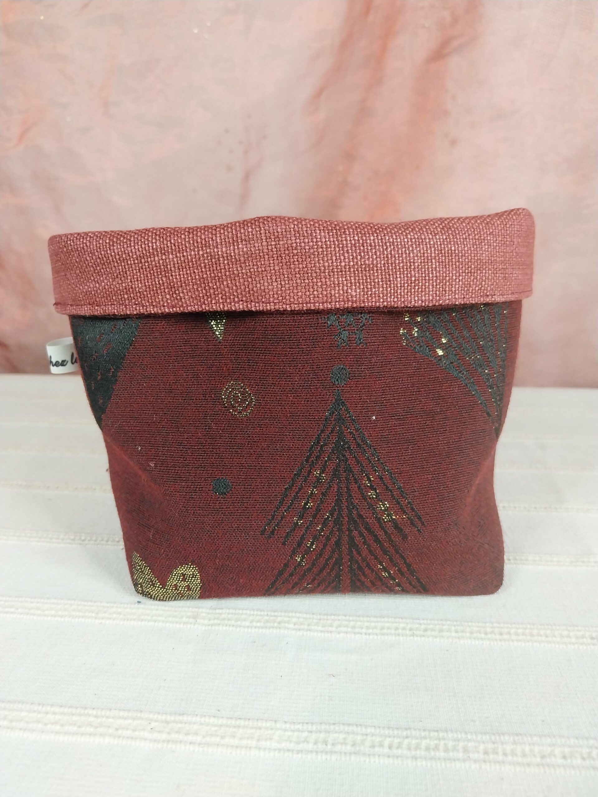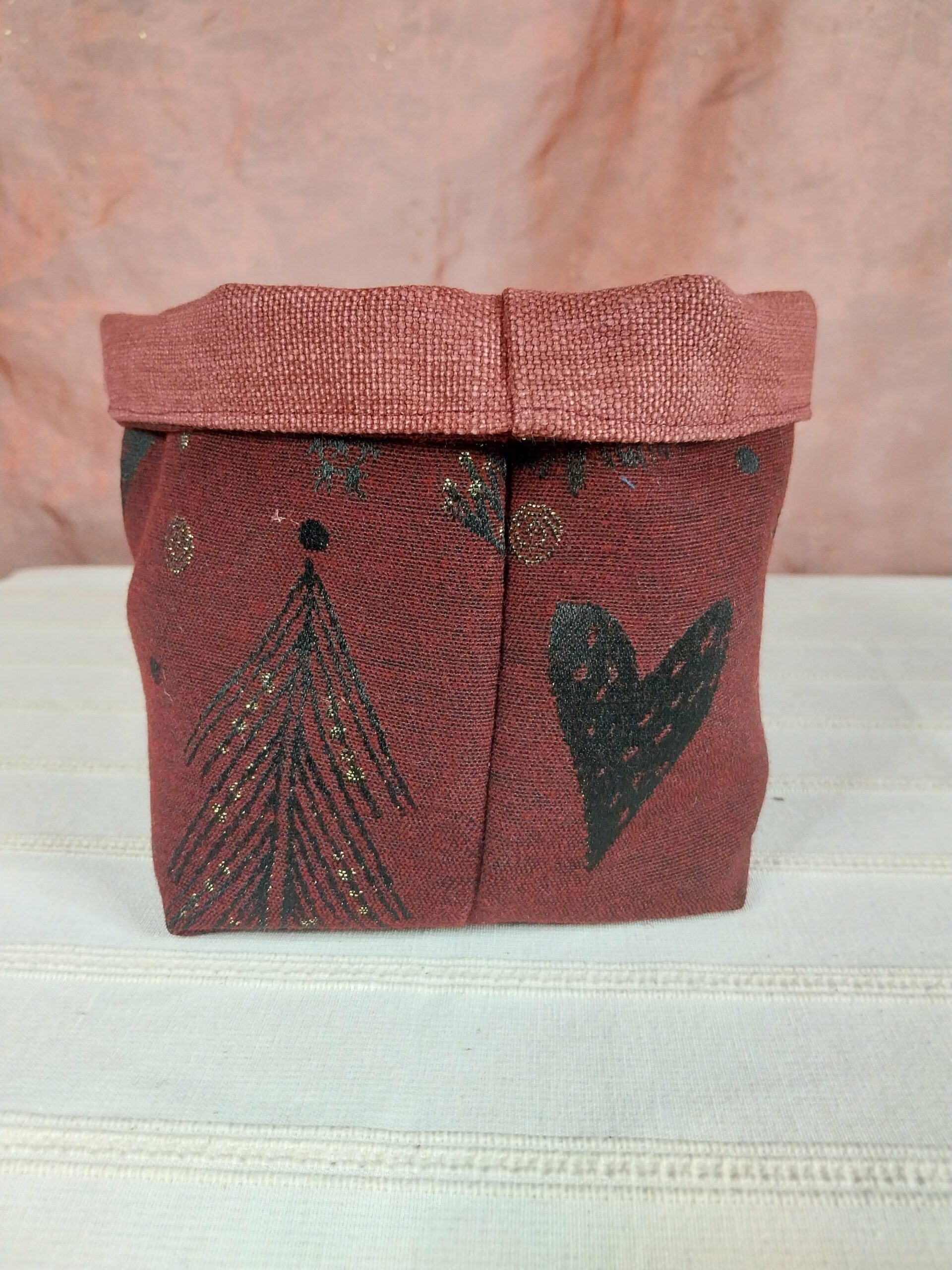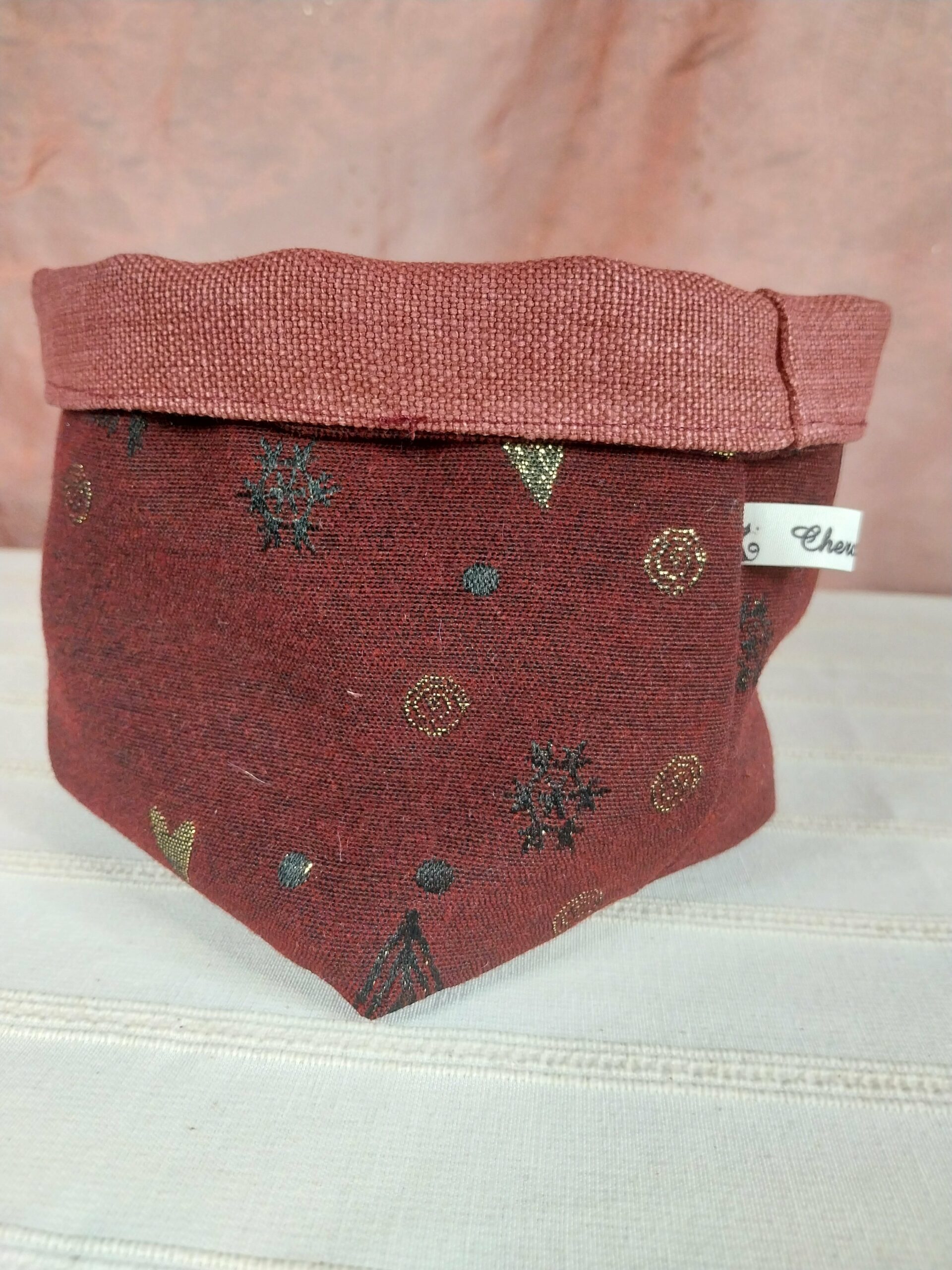 Celles-ci sont en jacquard bordeaux à motifs noël à l’extérieur, et en lin bordeaux à l’intérieur. A vous de choisir si vous faites un rabat ou non.