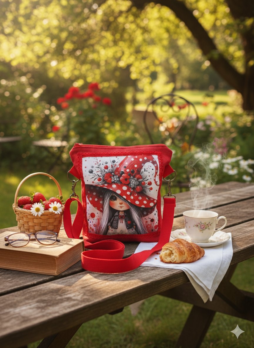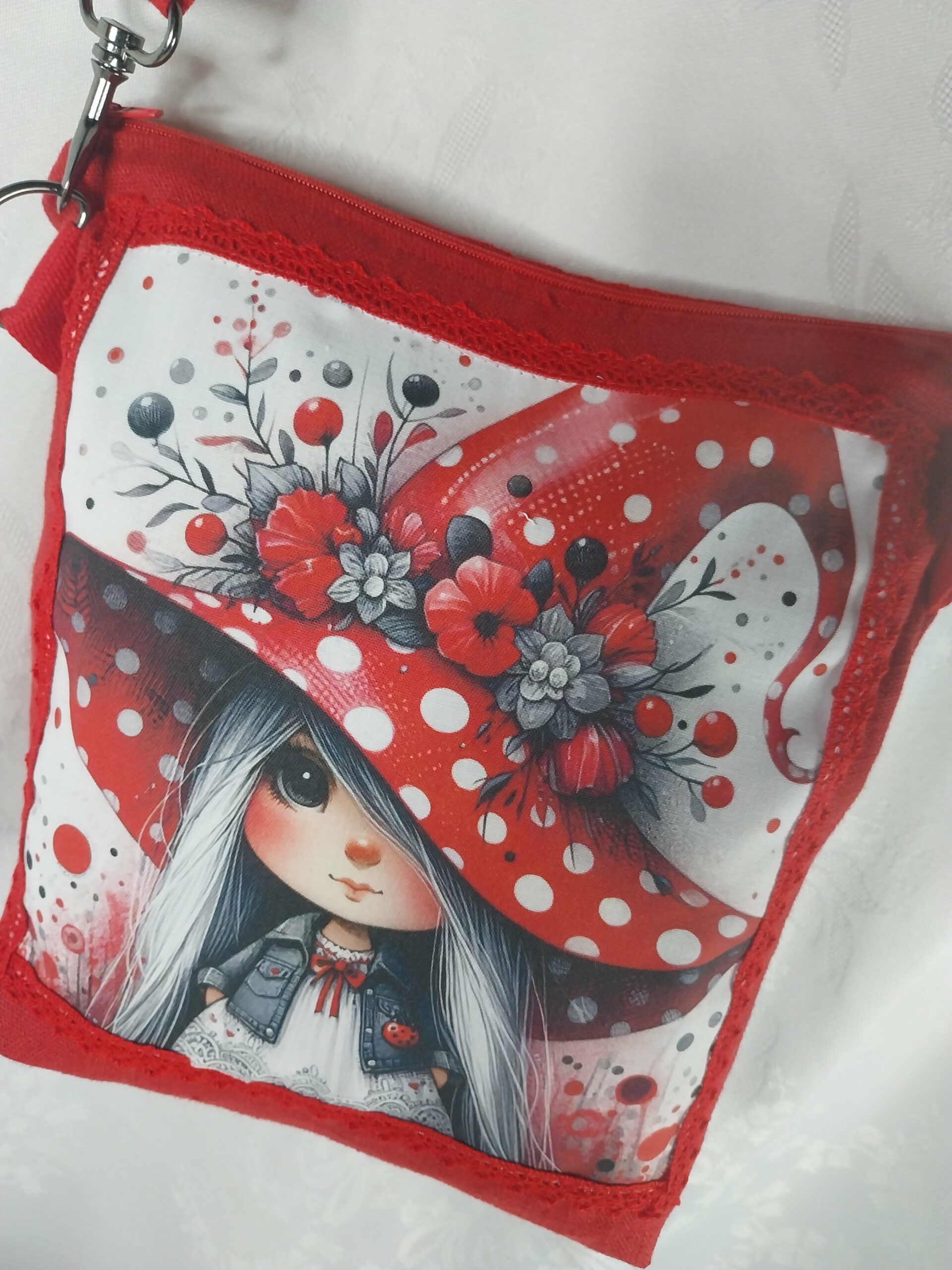 Un sac bandoulière rouge, fait main qui associe le lin et le coton. Un univers féérique s’y dessine, à travers le motif. Laissez-vous envoûter par le personnage. Une pièce unique pour vous accompagner au quotidien. Un sac de créateur original.