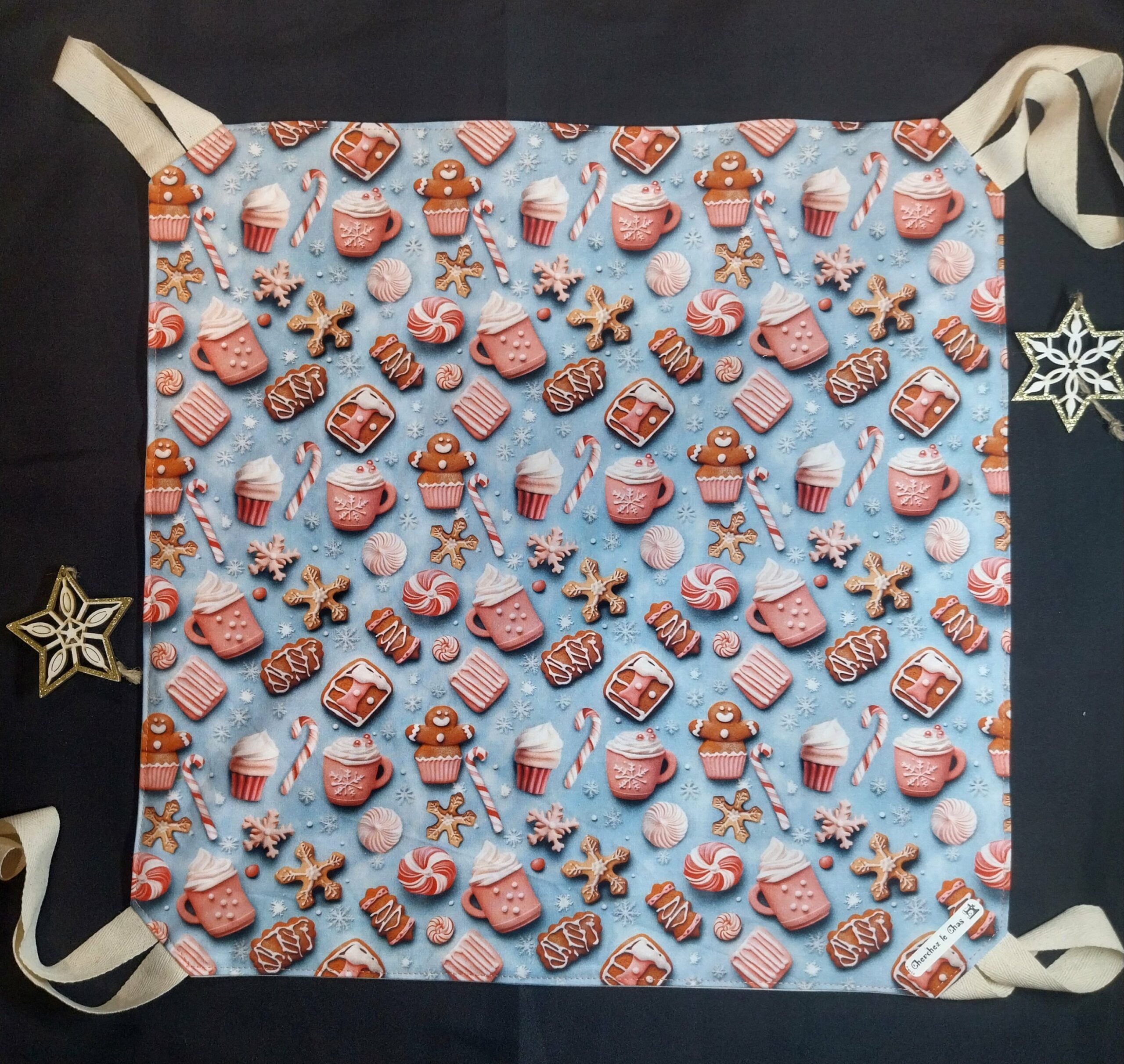 Un joli sac à tarte de Noël pour transporter élégamment et facilement votre tarte ou votre gâteau (rond)et même vos crêpes. Pour pique-niquer, pour le repas du dimanche chez belle-maman, pour aller chez les copains, on l’emporte partout.