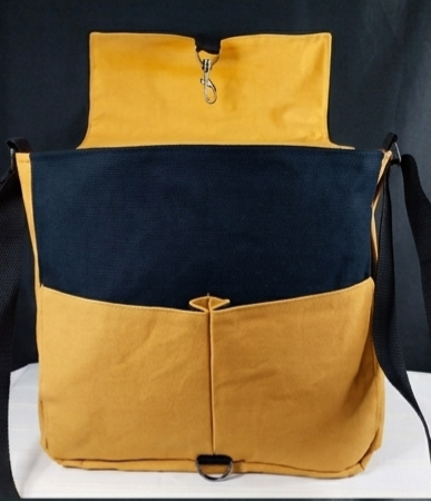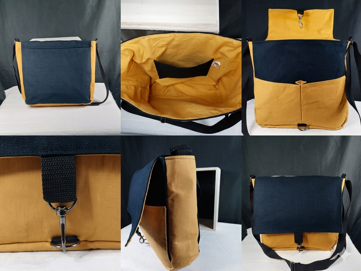 Confectionné dans une toile de coton épaisse, renforcé par du thermocollant, ce sac est conçu pour durer. Sur le devant une poche à soufflet très accessible, et à l’intérieur une poche plus sécurisée. Une praticité optimisée. La fermeture par mousqueton vient aider à fermer le rabat. La doublure intérieur est en cretonne de coton, pour ne pas alourdir le modèle. La sangle assortie est réglable, bien sûr.