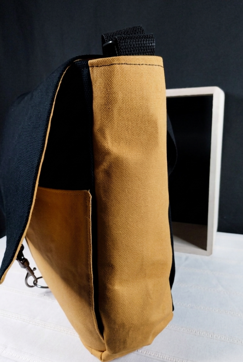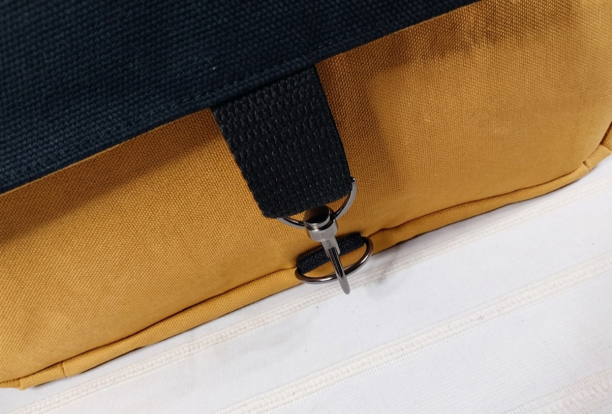 Son rabat noir protège vos effets personnels avec discrétion, tandis que la couleur ocre apporte une touche de lumière. Que vous soyez en mode professionnel ou en balade décontractée, cette besace s’adapte à toues les situations.